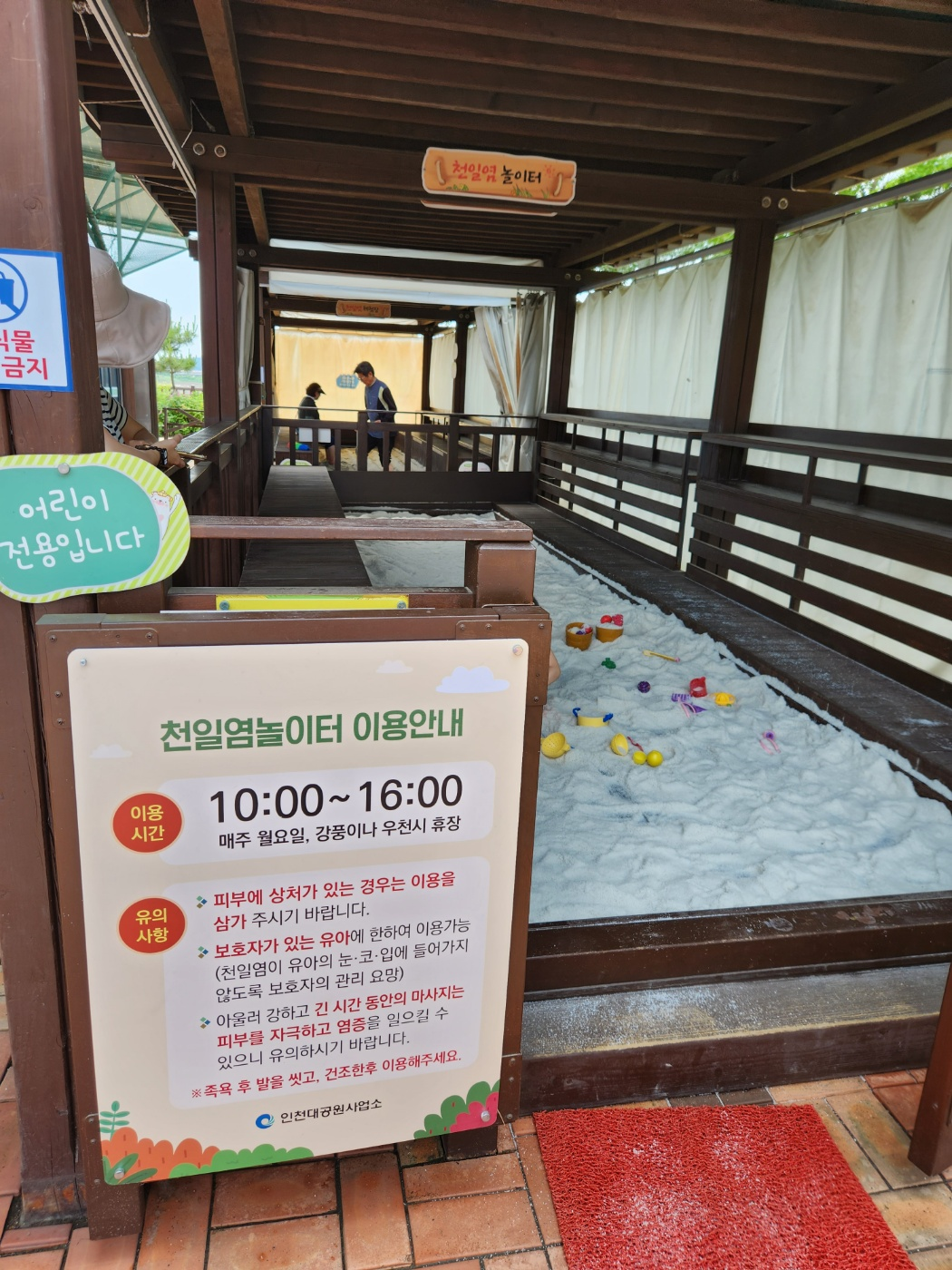 발을 담가 피로를 풀 수 있는 족욕장도 있었고, 소금으로 만든 어린이 전용 놀이터도 있었습니다.