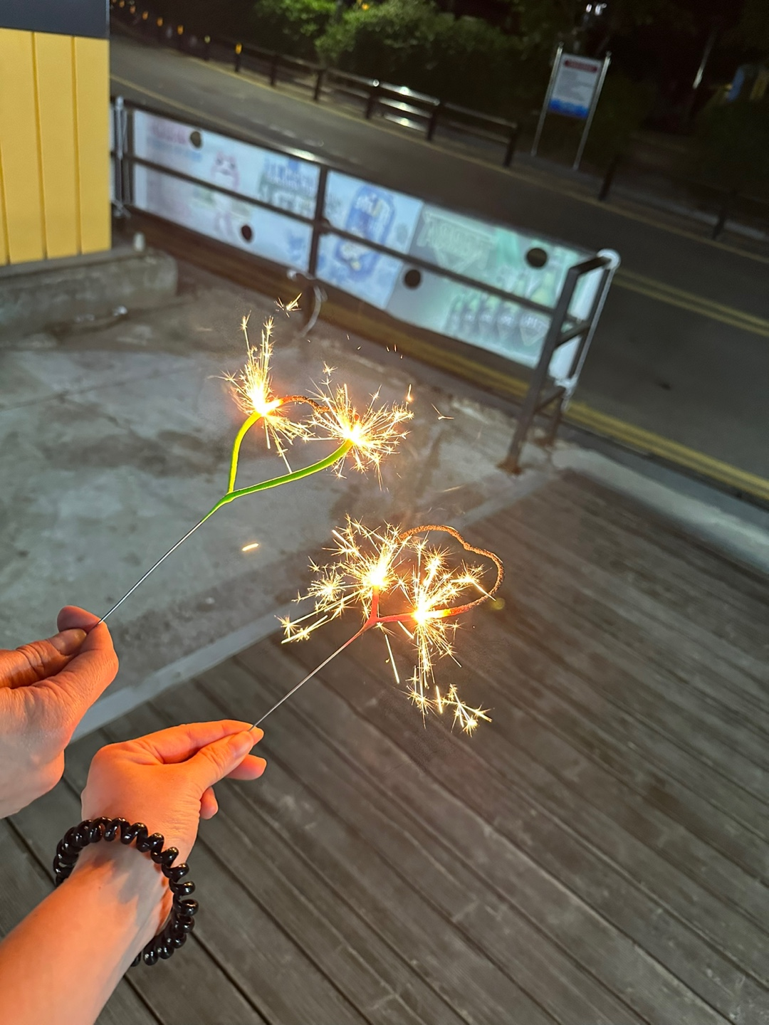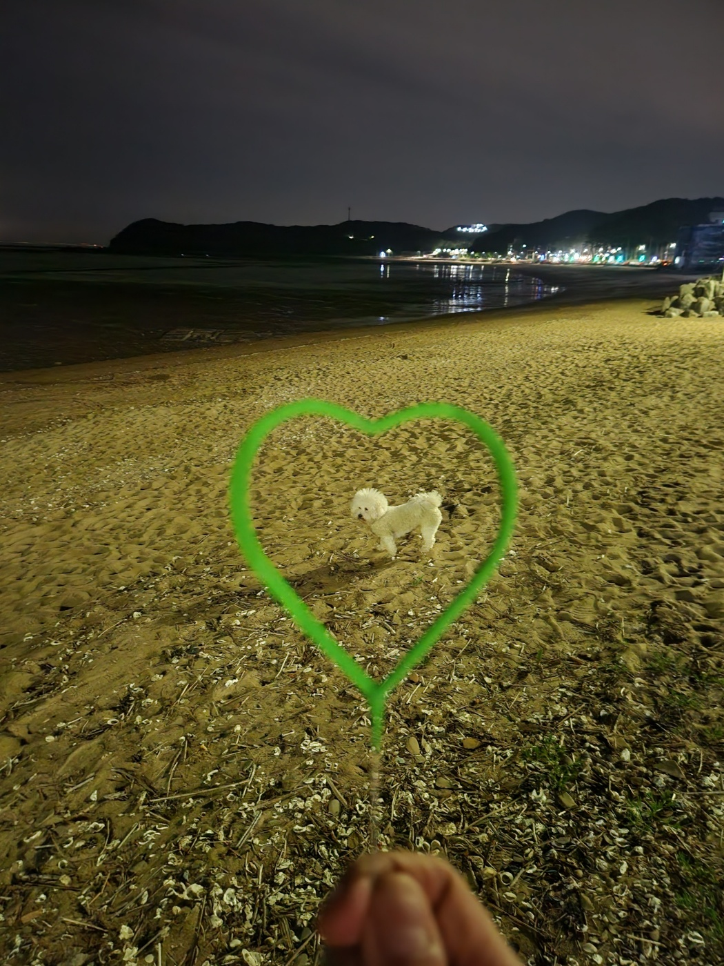 해당 펜션에서 정경리 해수욕장까지 900미터 정도 됩니다. 도보로 14분 정도면 갈 수 있는 거리라 저녁 식사 후 마실로 다녀왔습니다. 하트 모양 불꽃놀이도 하고 망구와 산책도 원 없이 했습니다.