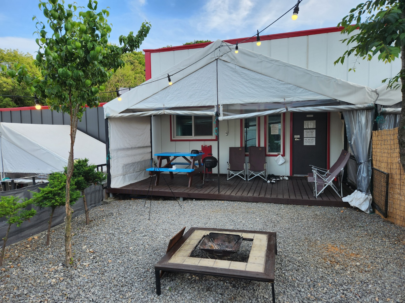 비치의자를 사용하여 식사 후 캠프파이어 혹은 일광욕할 때 사용할 수 있었고, 무엇보다 독채에 마당이 있다 보니 강아지와 시간을 보내기 정말 좋았던 거 같습니다. 펜스가 전부 둘러져 있어 안심하고 풀어놓을 수 있고, 나무로 조경이 되어있어 경치도 괜찮았습니다.